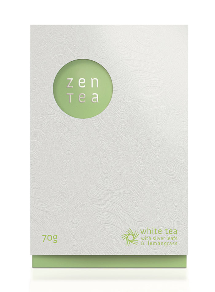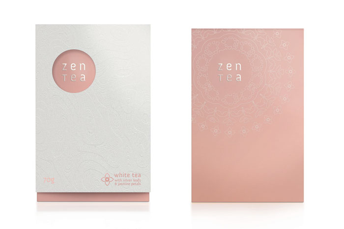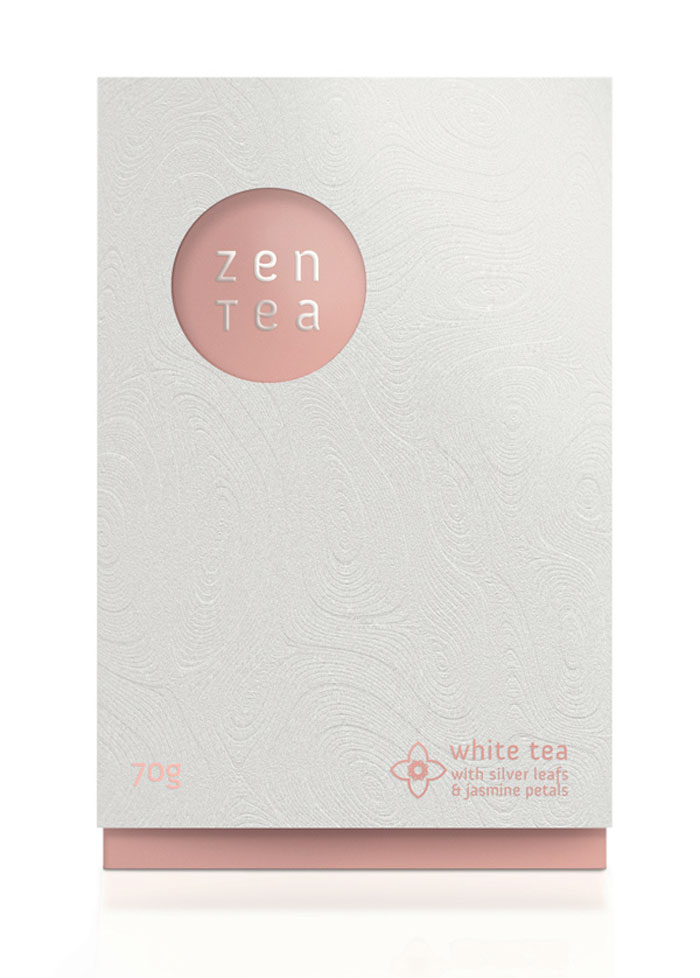看看這美麗的茶包裝。我們喜歡在外套筒上的一個(gè)禪宗花園的微妙質(zhì)地。一旦撕開它,你看到一個(gè)散熱墊模式從標(biāo)志類型。色彩柔和的調(diào)色板反映了設(shè)計(jì)師想要傳達(dá)的寧靜。