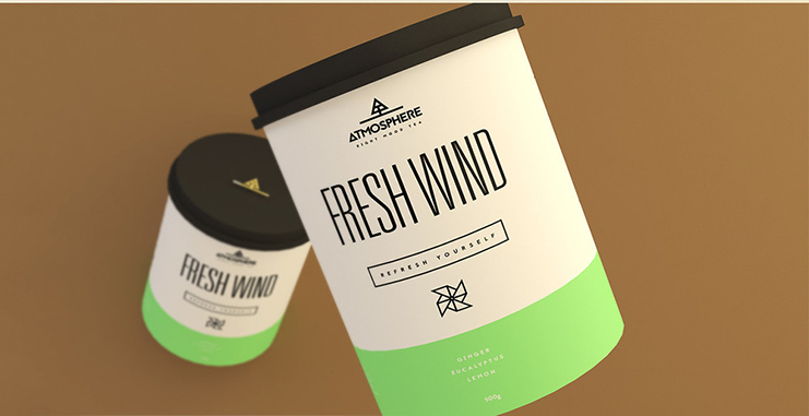 在密閉的圓柱形容器內(nèi),保持茶葉內(nèi)新鮮。每個品種都有一個好名字,意味著它所代表的元素,像“火”和“清新的風”。茶類寫的是一個又高又瘦的無襯線字體,他們都具有代表性的圖標。茶蓋的標志,一個幾何樹站在一個景觀,也看起來像字母“A”的